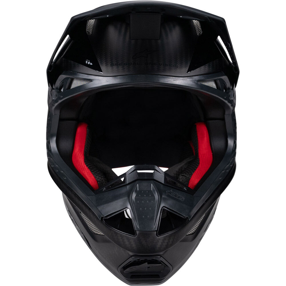 The S-M10's design is coherent with Alpinestars philosophy and shares distinctive themes with other products in the portfolio; a smooth, attractive, profile that is streamlined and free of any external channels and features that might act as a load point in an impact, or compromise the overall integrity of the construction. The surface curvature promotes reduced friction on impact, allowing deflection and the most efficient transfer of energy to protect the rider's head from direct force to the skull and referred to the neck and spinal column. The aperture is designed to accommodate a wide variety of goggles and the air vents in the shell are located to maximize ventilation efficiency.