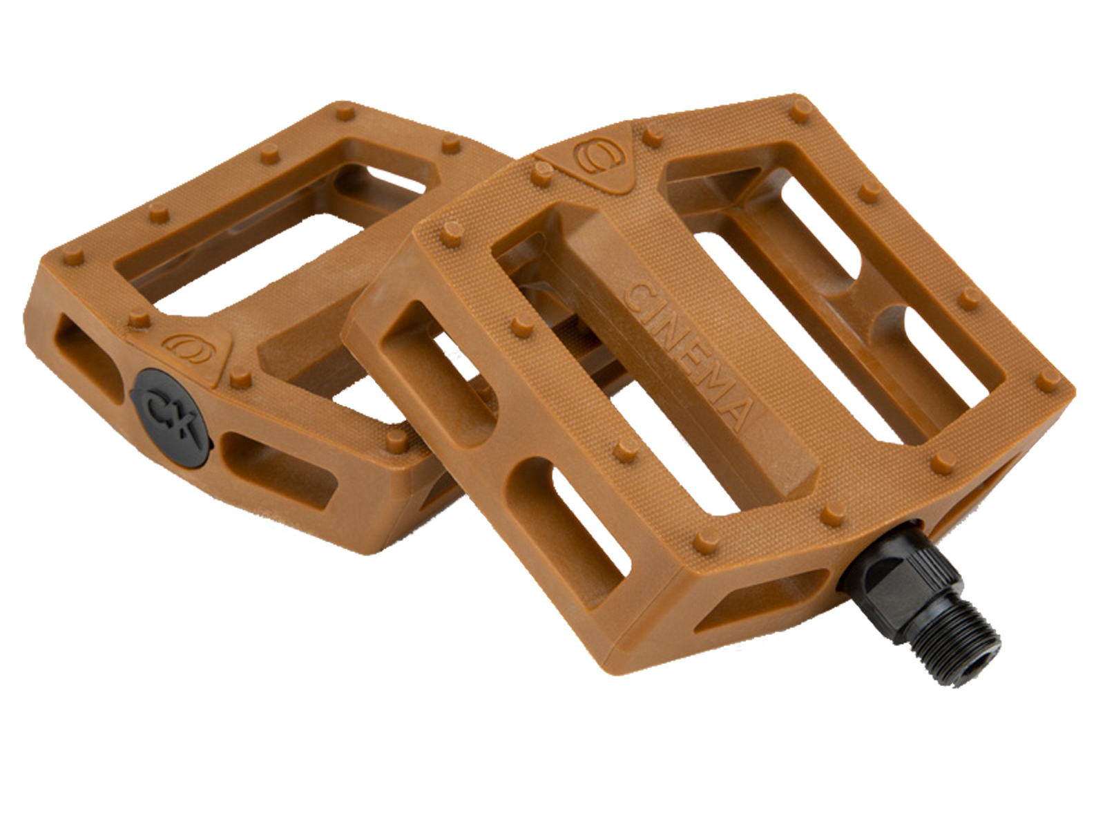 Chad Kerley’s signature CK pedals feature a comfortable concave body design, with 12 molded pins per side and micro knurling across the entire surface for added traction. The pedal bodies are injection molded from a tough nylon fiberglass blend, spinning on a durable full chromoly spindle. Embossed end caps feature the CK signature logo, and feature a unique removal slot should the pedal need to be tightened or greased.