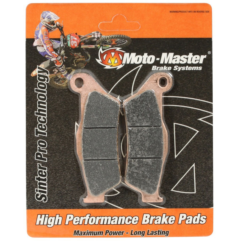 Our Moto-Master Brake Pads are developed to give you the most performance and longest life out of your brake system. Designed to have a progressive feel at the lever, our sintered metal pads offer a strong initial bite, along with great durability in extreme conditions. They also provide high thermal stability of up to 1,100 degrees Fahrenheit (600C) without any noticeable brake fade. Moto-Master Brake Pads are compatible with any OEM brake discs, but are specifically designed to work best with our own brake rotors.